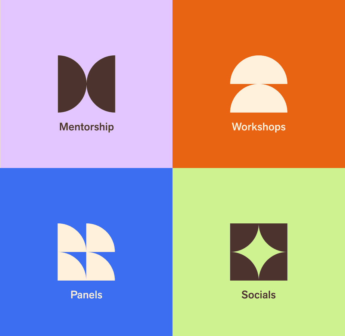 I developed 4 icons that represent some of the offerings of the DSA, which include Mentorship, Panels, Workshops, and Social Events.